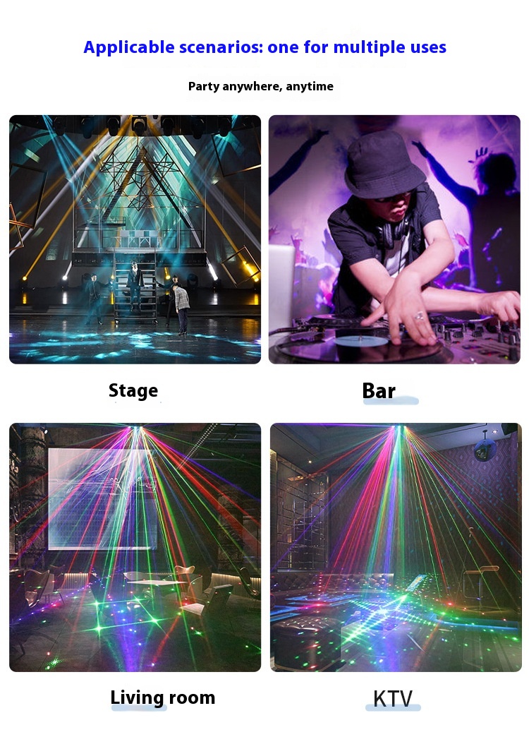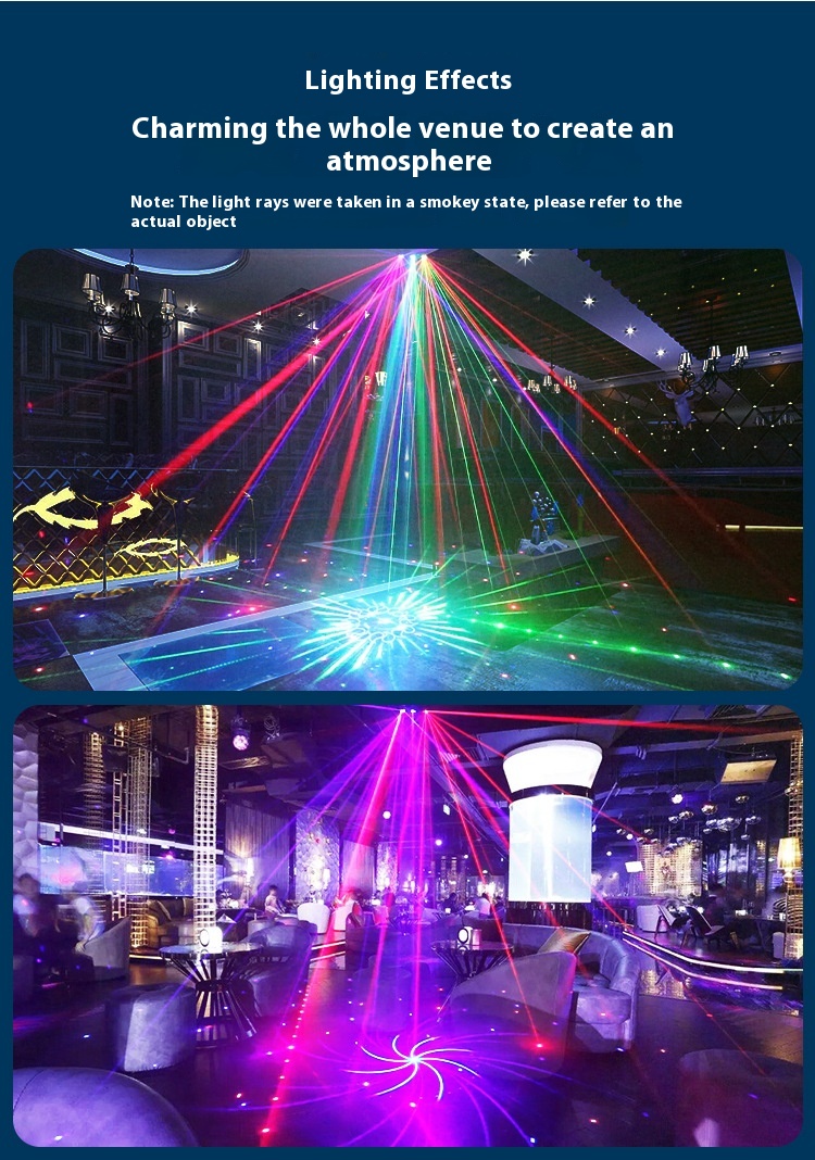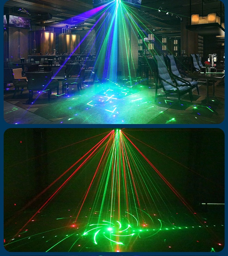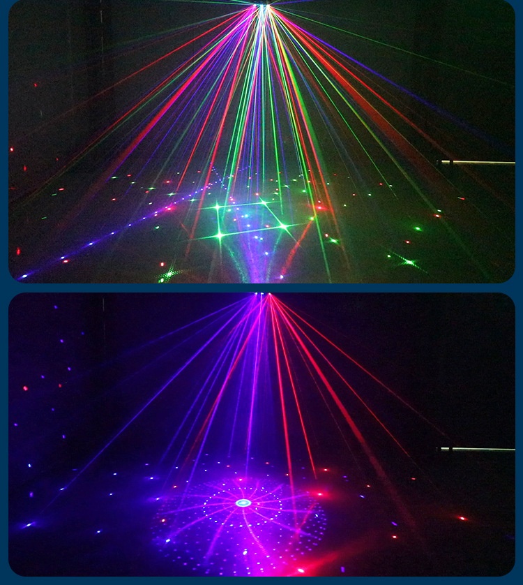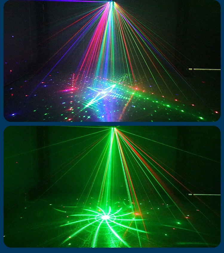 21 Multi-Eye Laser Effects: Projects dazzling beams and patterns across walls, ceilings, and dance floors, creating an immersive atmosphere for parties and performances.
